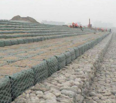采用六角形雙絞合專用機器編織成形,*后經人工握邊、組裝,打包壓縮,運輸到工程指定地點。在眾多水利工程項目中網孔在::60*80mm 、