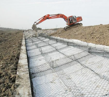 雷諾護(hù)墊也叫石籠護(hù)墊,格賓護(hù)墊,是指由機(jī)編雙絞合六邊形金屬網(wǎng)面構(gòu)成的厚度遠(yuǎn)小于長(zhǎng)度和寬度的墊形工程構(gòu)件。雷諾護(hù)墊中裝入塊石